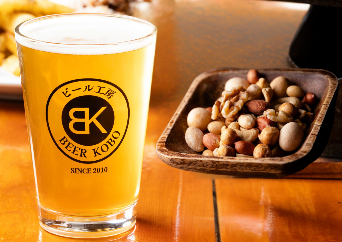 自家製クラフトビールハーフパイント+ミックスナッツ 気軽にさくっと1杯お楽しみください!